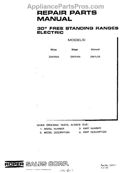 Parts for Roper 2347W0A: 01 - Power Lock Parts