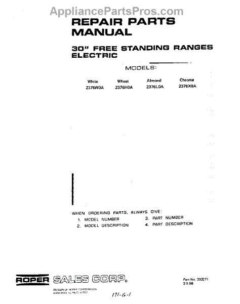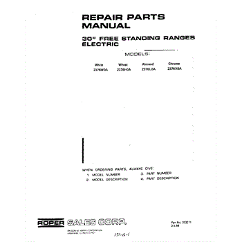 Roper Range Parts