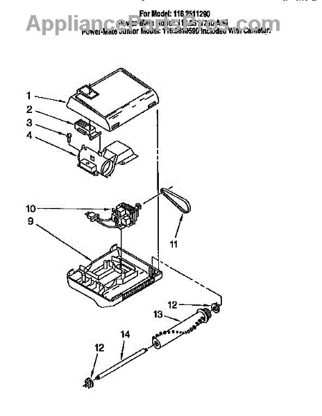 Parts for Kenmore 116.2511290 (1162511290, 116 2511290): Power-Mate (Junior) 116.5810590 Parts
