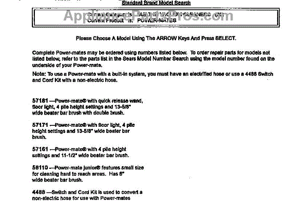 Parts for Muskin VACUUM CLEANERS: Power Mate Notes Parts