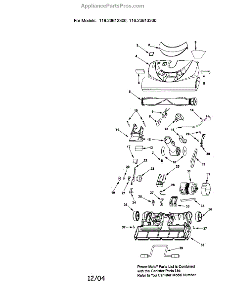 Parts for Kenmore 116.53613300 (11653613300, 116 53613300): Power-Mate Parts