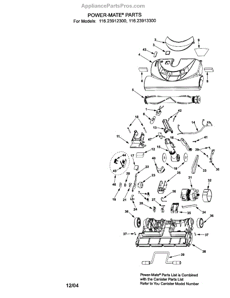 Parts for Kenmore 116.53912300 (11653912300, 116 53912300): Power-Mate Parts