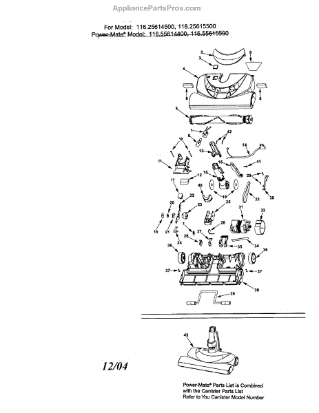 Parts for Kenmore 116.55615500 (11655615500, 116 55615500): Power-Mate Parts