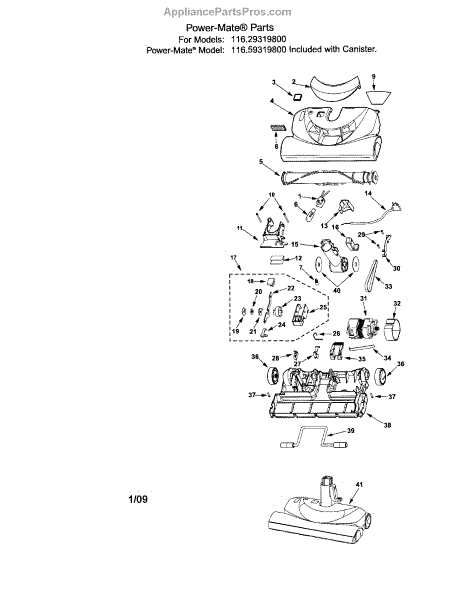 Parts for Kenmore 116.59319800 (11659319800, 116 59319800): Power-Mate Parts