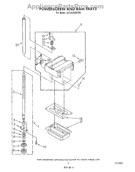 Parts for Whirlpool JJTU4100XTP0: 03 - Power Screw And Ram Parts