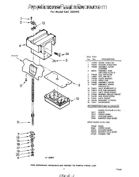 Parts for Whirlpool SAC300W0: 03 - Power Screw And Ram Parts