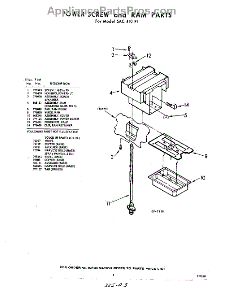 Parts for Whirlpool SAC410P1: 03 - Power Screw And Ram Parts