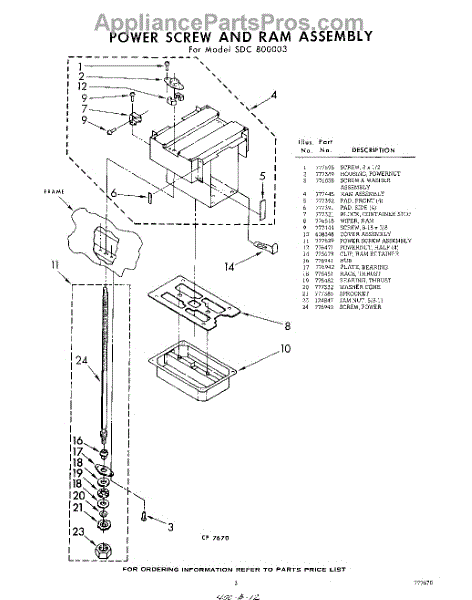 Parts for Whirlpool SDC800003: 03 - Power Screw And Ram Parts