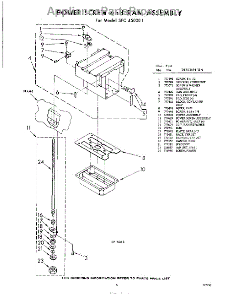 Parts for Whirlpool SFC450001: 03 - Power Screw And Ram Parts