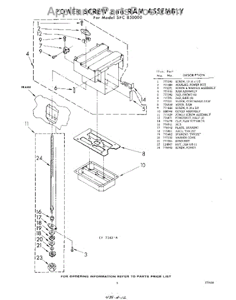 Parts for Whirlpool SFC850000: 03 - Power Screw And Ram Parts