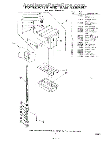 Parts for Whirlpool SHC800002: 03 - Power Screw And Ram Parts
