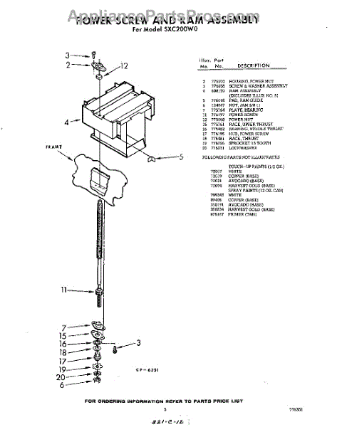 Parts for Whirlpool SXC200W0: 03 - Power Screw And Ram Parts