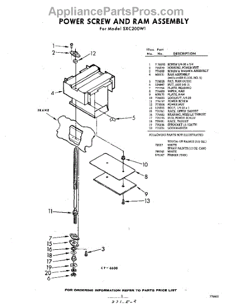 Parts for Whirlpool SXC200W1: 03 - Power Screw And Ram Parts