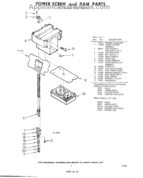 Parts for Whirlpool SXC300W2: 03 - Power Screw And Ram Parts