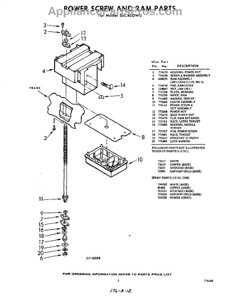 Parts for Whirlpool SXC400W0: 03 - Power Screw And Ram Parts