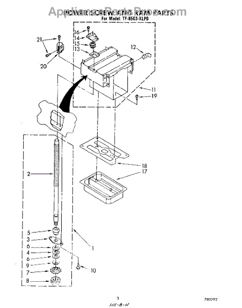 This power nut threads onto the trash compactor's drive screw to raise and lower the ram. Replacing a worn nut restores smooth ram travel and helps prevent binding, stalling, or a ram that doesn't move.