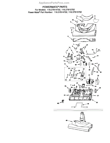 Parts for Kenmore 116.27814702 (11627814702, 116 27814702): Powermate Parts