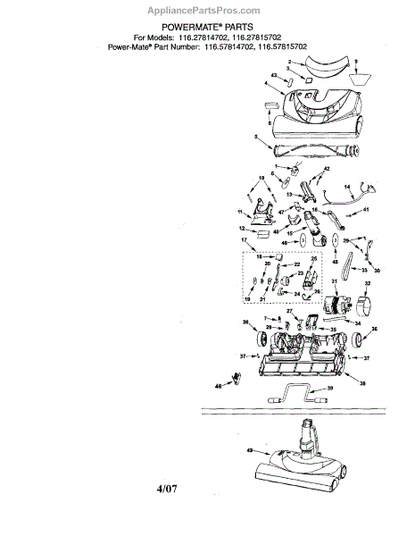 Parts for Kenmore 116.57815702 (11657815702, 116 57815702): Powermate Parts