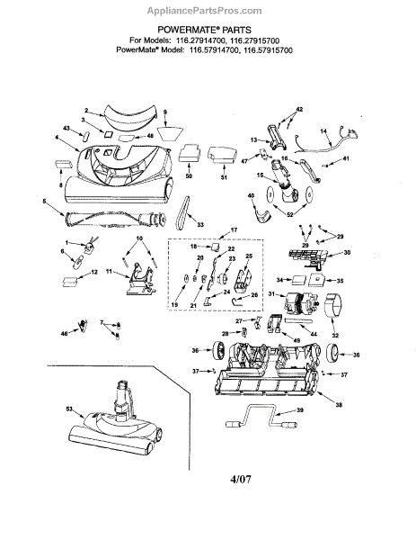 Parts for Kenmore 116.57915700 (11657915700, 116 57915700): Powermate Parts