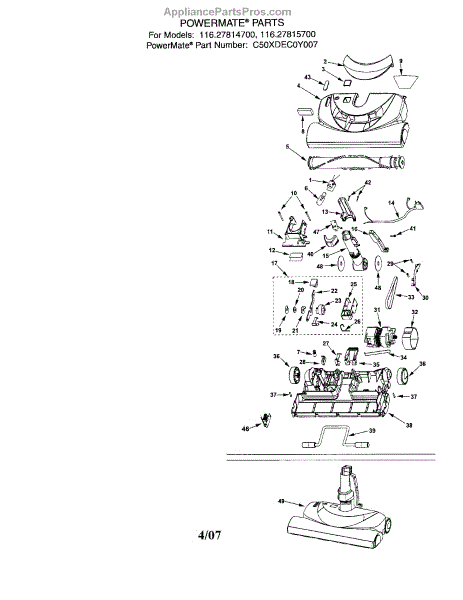 Parts for Kenmore C50XDEC0Y007: Powermate Parts