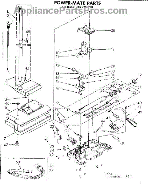 Parts for Kenmore 116.2216280 (1162216280, 116 2216280): Powermate Parts