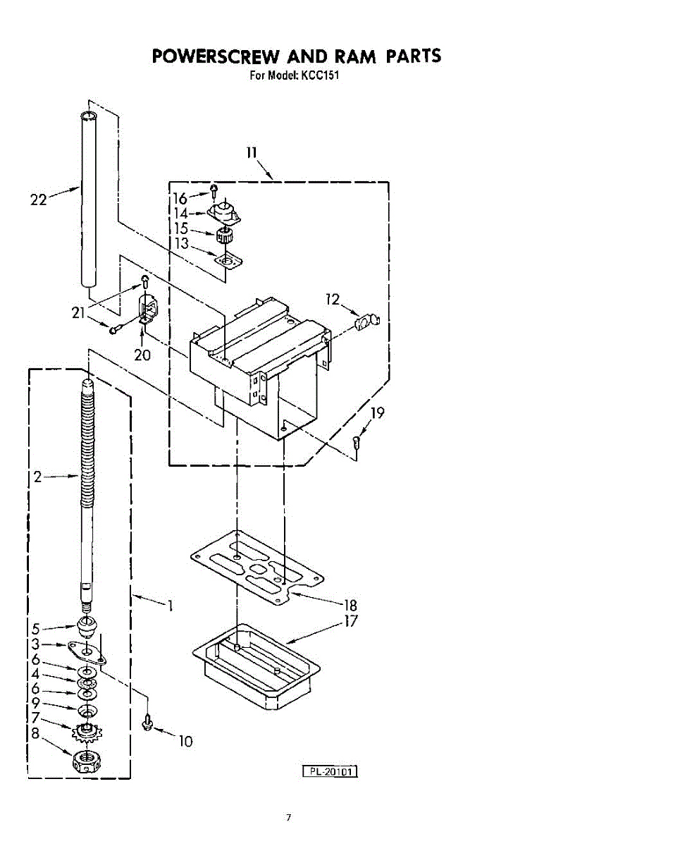 Parts for Kitchenaid KCC150: 07 - Powerscrew And Ram (Kcc151) Parts