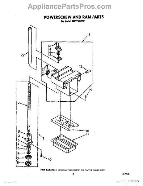 Parts for Whirlpool AMB750WP01: 03 - Powerscrew And Ram Parts