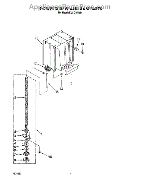 The Power Nut Kit is an OEM replacement part for Whirlpool trash compactors. It is designed to attach to the side of the ram and is threaded to interact with the power screw. As the power screw rotates, it feeds through the power nut, pulling the ram down to compact the trash.