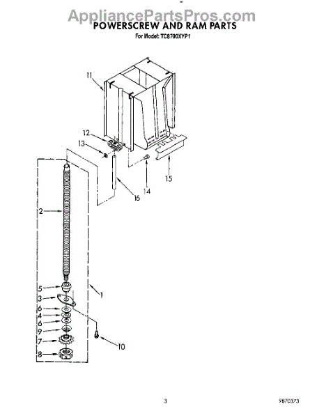 The Power Nut Kit is an OEM replacement part for Whirlpool trash compactors. It is designed to attach to the side of the ram and is threaded to interact with the power screw. As the power screw rotates, it feeds through the power nut, pulling the ram down to compact the trash.