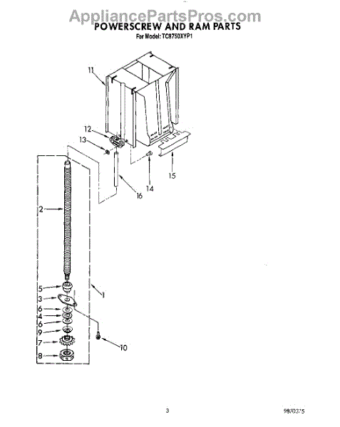 The Power Nut Kit is an OEM replacement part for Whirlpool trash compactors. It is designed to attach to the side of the ram and is threaded to interact with the power screw. As the power screw rotates, it feeds through the power nut, pulling the ram down to compact the trash.