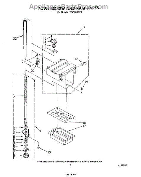 Parts for Whirlpool TF4500XRP3: 03 - Powerscrew And Ram Parts