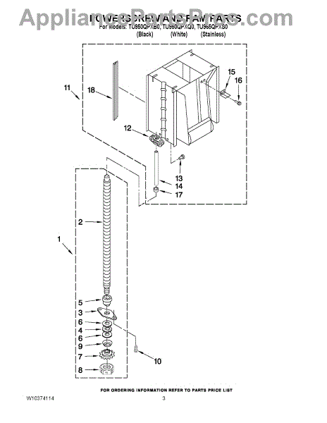 Parts for Whirlpool TU950QPXB0: 03 - Powerscrew And Ram Parts