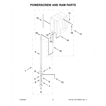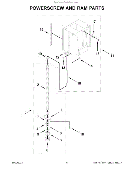 The Power Nut Kit is an OEM replacement part for Whirlpool trash compactors. It is designed to attach to the side of the ram and is threaded to interact with the power screw. As the power screw rotates, it feeds through the power nut, pulling the ram down to compact the trash.