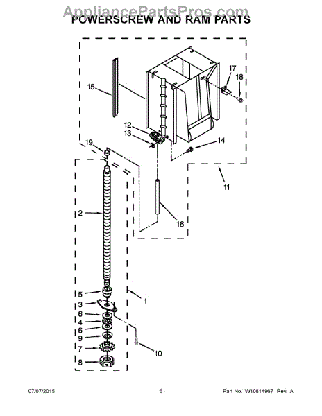 The Power Nut Kit is an OEM replacement part for Whirlpool trash compactors. It is designed to attach to the side of the ram and is threaded to interact with the power screw. As the power screw rotates, it feeds through the power nut, pulling the ram down to compact the trash.