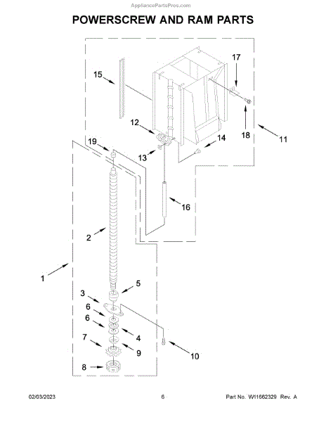 The Power Nut Kit is an OEM replacement part for Whirlpool trash compactors. It is designed to attach to the side of the ram and is threaded to interact with the power screw. As the power screw rotates, it feeds through the power nut, pulling the ram down to compact the trash.