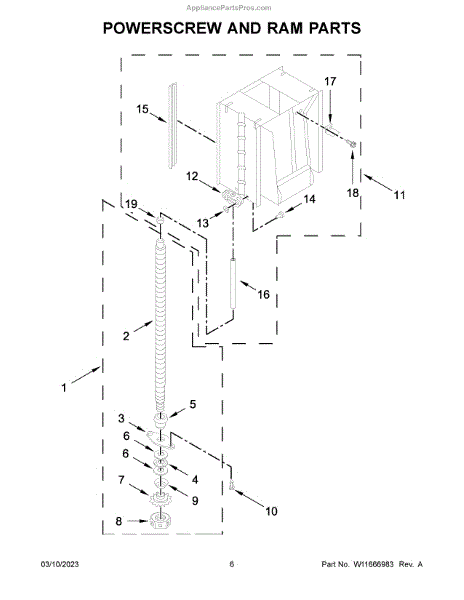 The Power Nut Kit is an OEM replacement part for Whirlpool trash compactors. It is designed to attach to the side of the ram and is threaded to interact with the power screw. As the power screw rotates, it feeds through the power nut, pulling the ram down to compact the trash.