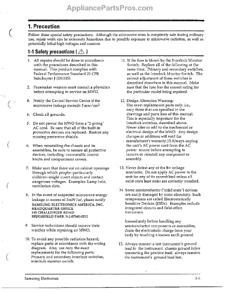 Parts for Samsung MW4371G/XAA: Precautions Page 2 Parts