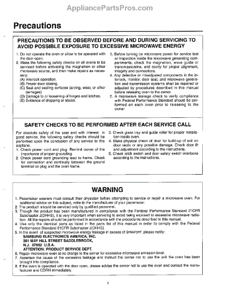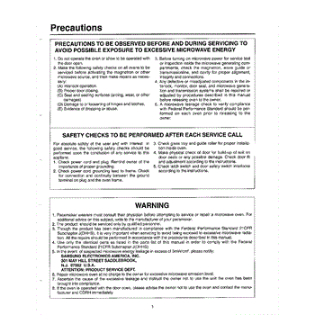 Parts for Samsung MW5620T/XAA: Precautions / Safety Check / Warning Parts