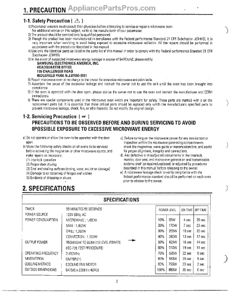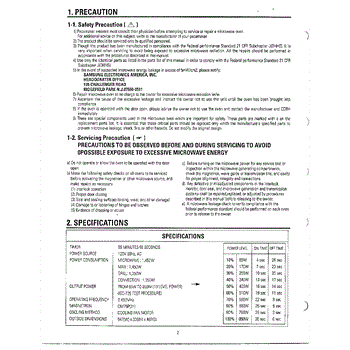 Parts for Samsung MC6566W/XAA: Precautions / Specifications Parts