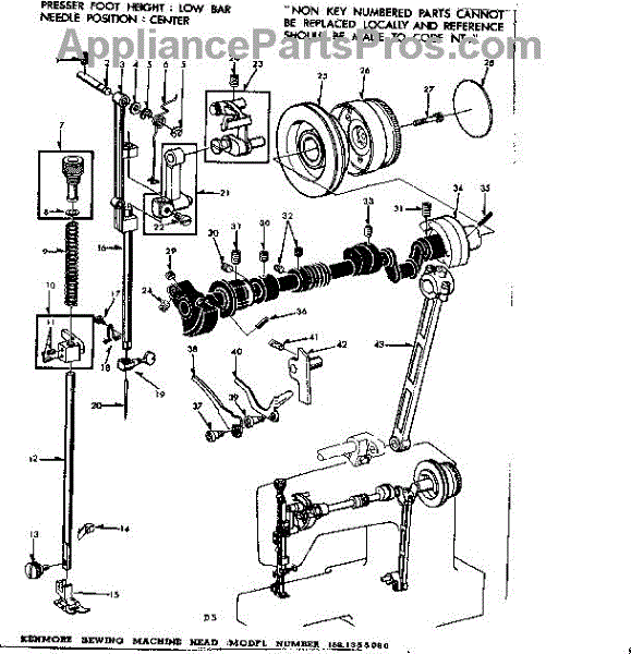 Parts for Kenmore 158.1355080 (1581355080, 158 1355080): Presser Bar Assembly Parts