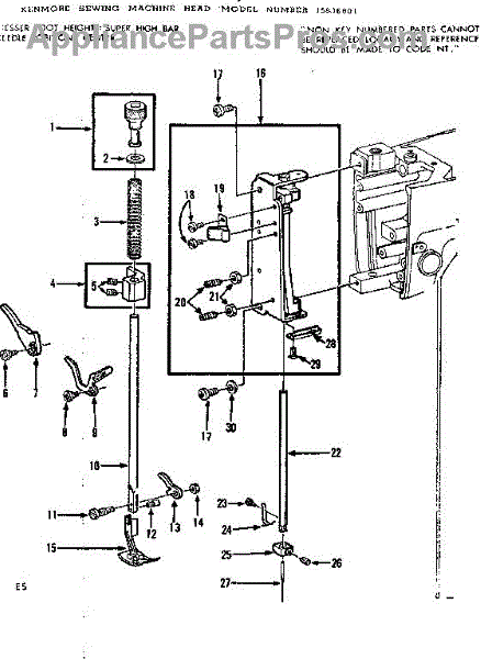 Parts for Kenmore 158.16801 (15816801, 158 16801): Presser Bar Assembly Parts