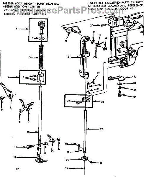 Parts for Kenmore 158.17810 (15817810, 158 17810): Presser Bar Assembly Parts