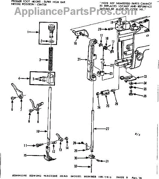 Parts for Kenmore 158.17812 (15817812, 158 17812): Presser Bar Assembly Parts