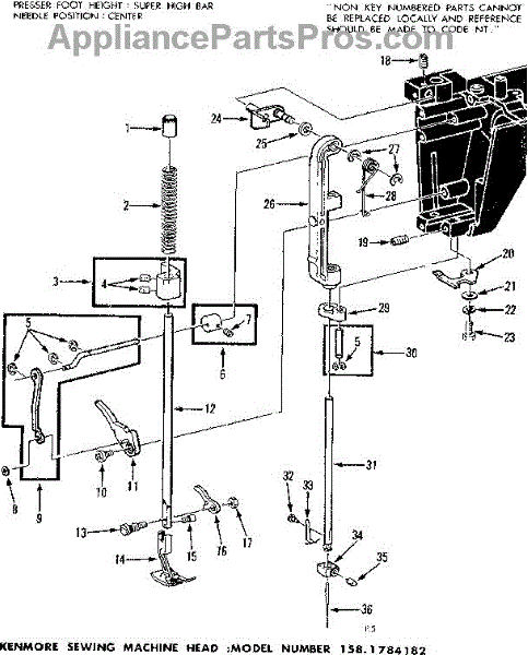 Parts for Kenmore 158.1784182 (1581784182, 158 1784182): Presser Bar Assembly Parts