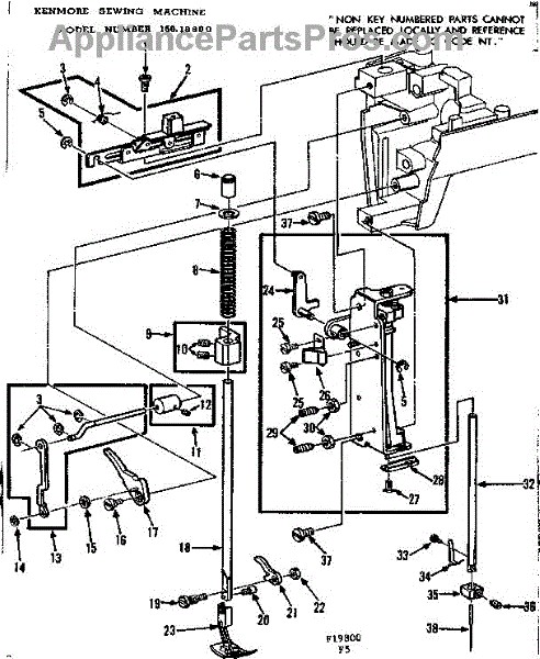 Parts for Kenmore 158.19800 (15819800, 158 19800): Presser Bar Assembly Parts