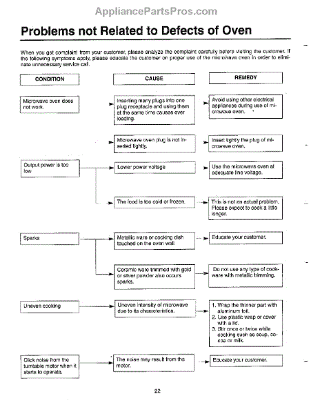 Parts for Samsung MW5620T/XAA: Problems Not Related To Defects Parts