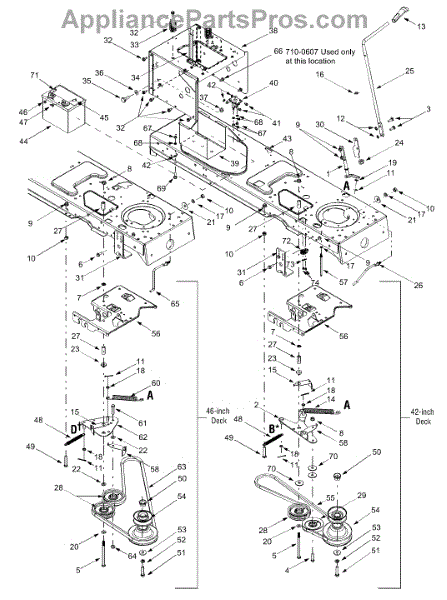 Parts for Ranch King 13AU618H705 / 2004: Pto Manual, Battery, Frame Parts