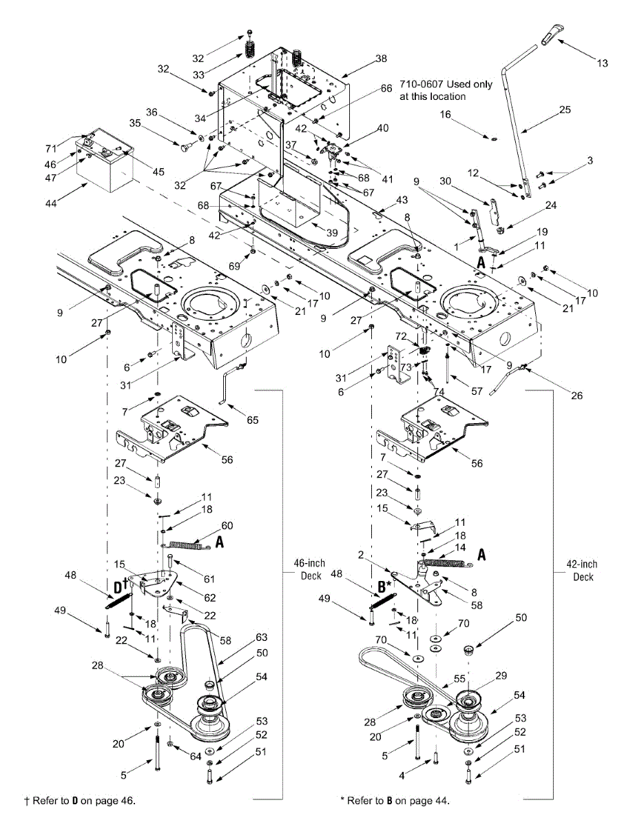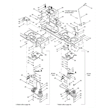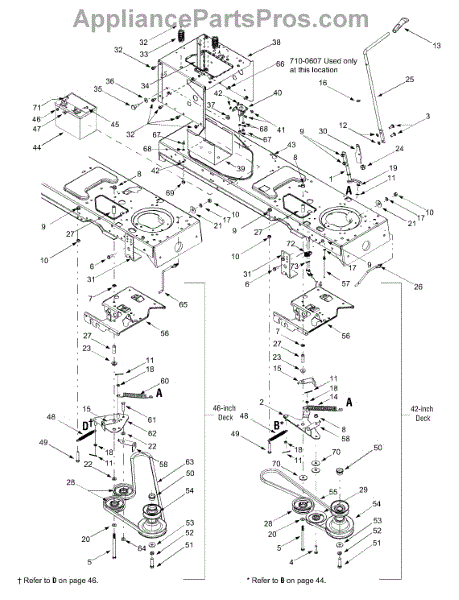 Engagement plate assembly for lawn tractors. Mounts to the engine deck to control blade engagement. Replace if cracked, bent, or missing components.