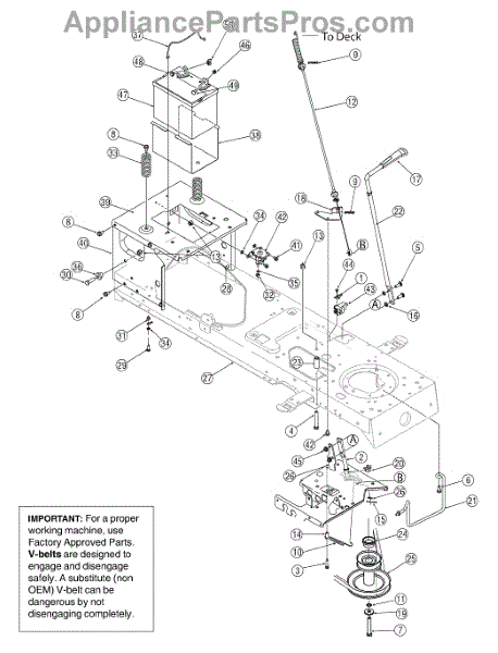 This spacer is a genuine MTD part, sold individually. This spacer can be used as a replacement part in a lawnmower. The purpose of a spacer in a lawnmower is to attach to the deck shell and create a space between one or more components such that friction can be reduced during use.The spacer in a lawnmower is a small fastening component that can be easily lost or misplaced; additionally, the spacer can be damaged during the standard lifespan of the lawnmower that can render it beyond functionality. If the spacer is lost or misplaced, or if the spacer is punctured, dented, warped, eroded, or otherwise damaged, the spacer should be removed and replaced by this genuine OEM replacement part as soon as possible. A replacement will ensure that the appliance continues to function as usual.This OEM part is a genuine replacement that is sold individually and sourced directly from the manufacturer. This spacer is compatible with the following outdoor appliance brands: MTD, Troy-Bilt, Ryobi, Bolens, Yard-Man, Cub Cadet, and Husky.