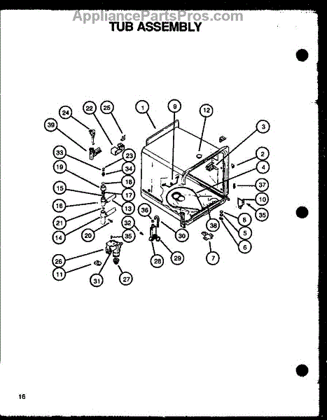 Parts for Caloric DUS300B/P1139729NB: Ptub Assembly (Dcs450w / P1139734nw) Parts